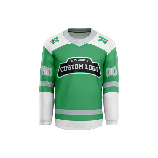 Custom Kelly Green Xmas Hockey Jersey